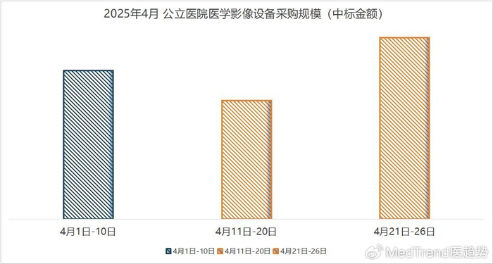 根据4月(按中标时间)的招投标数据观察,在医学影像领域似乎并未受到显著影响,尽管中旬的招投标规模有所减少,但到了下旬,规模开始显著增长。