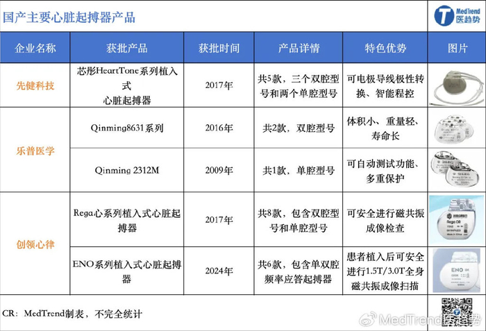 相较之下,国产起搏器玩家主要有乐普医疗、先健科技、微创医疗等。