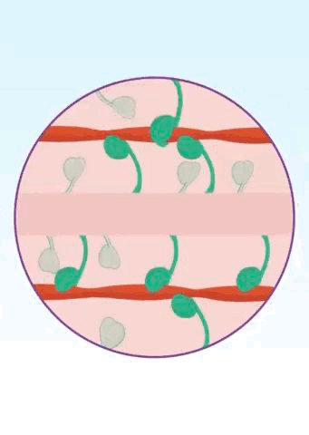 (图中绿色代表β-肌球蛋白头部,红色代表肌动蛋白组成的细肌丝)