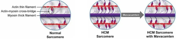 简单来说,玛伐凯泰通过选择性抑制心肌肌球蛋白ATP酶活性,从源头改善心肌超收缩状态,使心肌纤维在收缩与舒张之间重新获得平衡。与以往的β受体阻滞剂、钙拮抗剂等“对症治疗”药物不同,玛伐凯泰首次实现了针对病理生理机制的靶向干预。