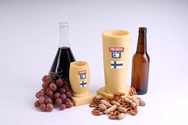 为了庆祝芬兰的百岁生日,芬兰乳制品公司Finlandia Cheese推出了限量版的定制生产线,用起司雕刻而成的啤酒和葡萄酒杯。没错,从上到下、从里到外都是用起司做的。