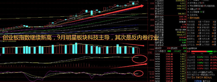 创业板指数周二再创新高,9月份机构资金重点集中在科技与反内卷板块,没有做这2个方向是很难赚钱的,哪怕参与了科技没有买对标的可能也是看着别人吃肉。展望后市,市场基本面有逐季回落趋势,但政策面存在提振宏观经济的可能,资金面、海外市场影响方面相对乐观。接下来注意创业板指数能否在3260点之上稳住。