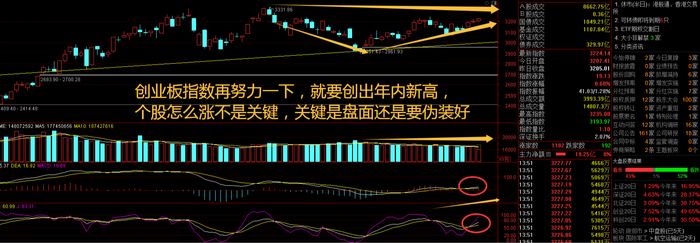 创业板指数周三并未继续上攻,仍然是题材板块快速轮动的走势,市场行情并未出现明显的变数,反而要注意近期的新股大涨大跌的陷阱。临近年终,市场上关于春季行情的讨论持续升温。积极有力的政策将有效提振投资者信心,叠加上市公司盈利有望边际改善、内外部流动性环境向好,在多重积极因素共振下,“春季躁动”值得期待,建议逢低布局,科技成长、内需消费有望成为重要投资主线。接下来注意创业板指数能否在3200点之上稳住。
