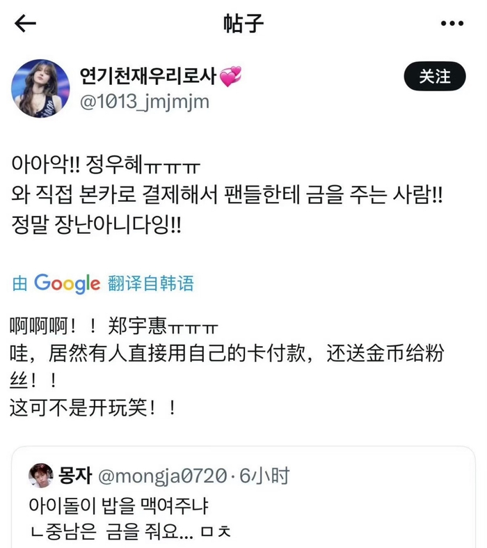 韩网热议丁禹兮逆应援送粉丝黄金,都在夸赞大禹,韩女已深深被大禹魅力折服了吧不是第一次逆应援,是次次都用心,韩网热议的从来不是黄金多贵重,是偶像与粉丝双向的偏爱多动人,大禹的真诚,永远最戳人