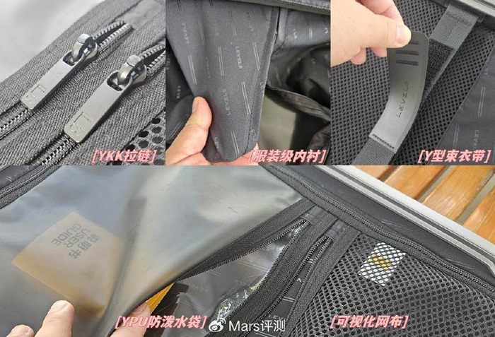 从外观方面,氦系列在正面的LOGO设计、铝框材质的运用更突出;尤其是在密码锁的设计体验方面更丝滑;内部的收纳设计也进行了设计,规划了干湿分离区等。