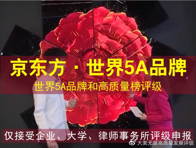 世界5A品牌和高质量榜评级机构《大美无度》公告:根据2022年10月10日CNISA高质量发展指数,20家获评世界5A级品牌。其中京东方获评世界5A品牌,入选2022“世界500强”第189位。