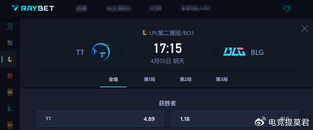 对于BLG与TT的比赛,专业电竞预测机构认为BLG的指数是1.18,TT的指数是4.89,BLG占优。第一赛段,TT曾经战胜BLG,荣获黑马荣誉。不过,随着TT的打法被研究透彻:太过依靠打野北川。一旦打野受限,TT将很难有所作为。这场比赛,BLG复仇TT势在必行。