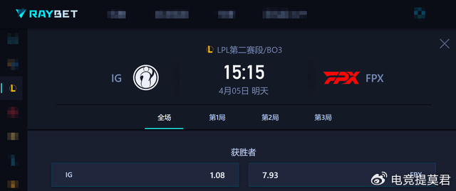 对于IG与FPX的比赛,专业电竞预测机构认为IG的指数是1.08,FPX的指数是7.93,IG有较大机会拿下开门红。FPX通过晋级赛晋级登峰组,最后两场比赛上野的发挥相当出色,这让大家对FPX有了更多的期待。不过,相较来说FPX整体实力仍旧有着很大的提升空间,面对火力全开的IG难有招架之力。