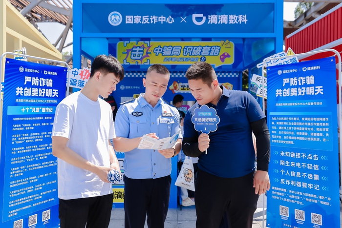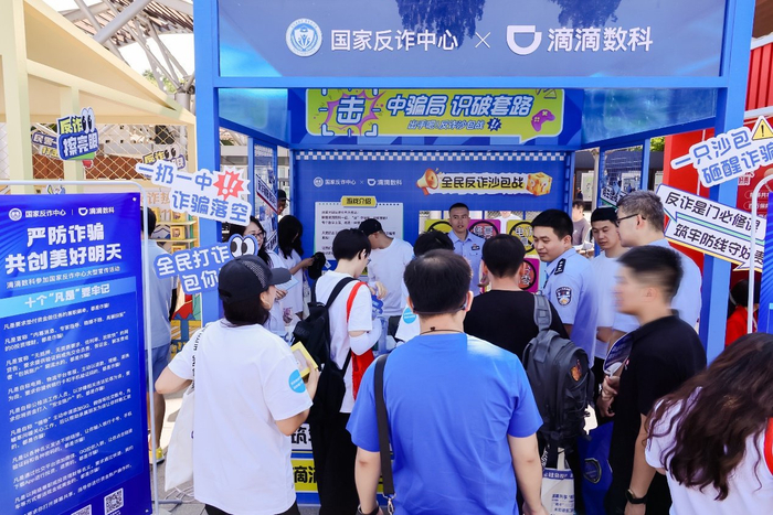 活动现场,滴滴数科联合公安部刑事侦查局、防范电信网络诈骗信息监控中心,通过讲解反诈知识手册、游戏互动、打卡互动等方式,向公众普及常见诈骗套路案例及反诈关键词,增强公众风险识别力与防骗意识。