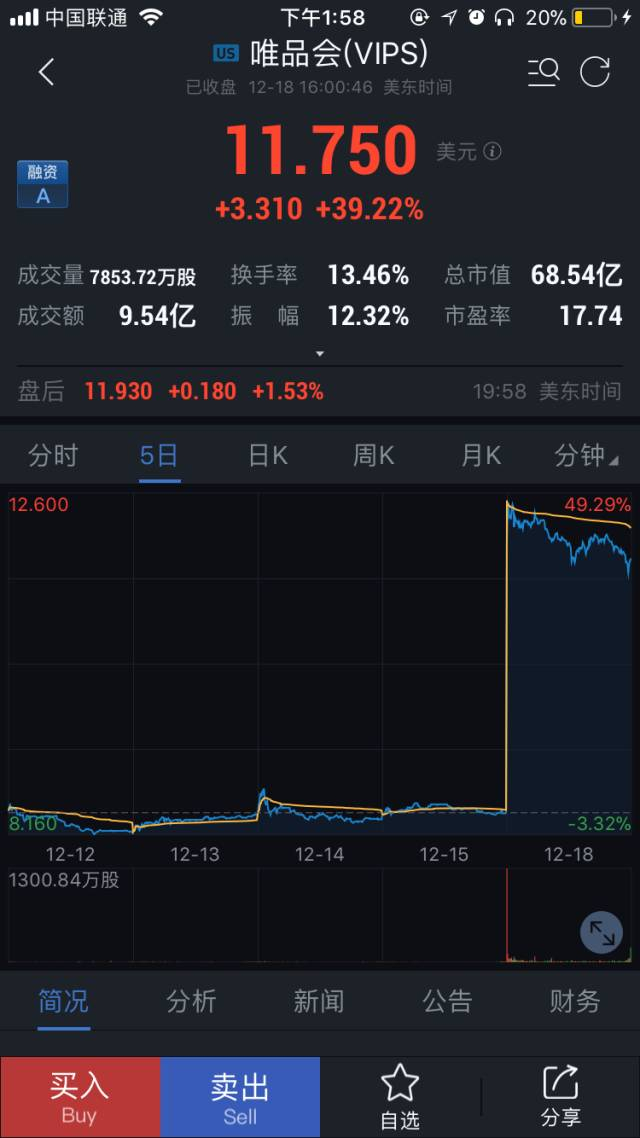 12月18日,腾讯和京东向唯品会投资8.63亿美元,这波投资做完以后,腾讯将持有7%的唯品会股份,成为第二大股东,京东将持有5.5%,成为它第四大股东,当晚美股开盘,唯品会暴涨超40%。