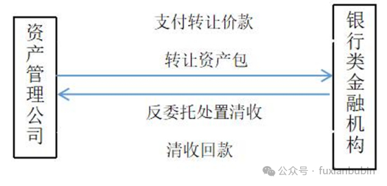 不良资产收购反委托业务,是在不良资产真实、洁净出表前提下,不良资产经营主体可采取反委托相关金融机构的方式进行处置。双方应当依法签订反委托处置协议,明确双方权利义务和责任,约定受托处置目标、处置期限、处置进度等内容,压实不良资产经营机构的主体责任和受托机构的管理责任。其基本交易业务逻辑如图所示:
