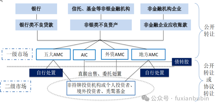 不良资产经营机构作为一级市场和二级市场的纽带,在一级市场的收购过程中,不良贷款出让银行应依照法律法规规定要求,通过公开拍卖、邀标竞价等公开方式对外出让不良债权,不良资产经营机构与投资者签署委托竞买协议等法律文件,并在收到投资者支付的保证金后,参与金融机构的公开拍卖、邀标竞价,并受让金融机构出让的批量不良债权。在竞得不良资产后,不良资产经营机构向投资者收取债权尾款,并向其转让竞得的债权。