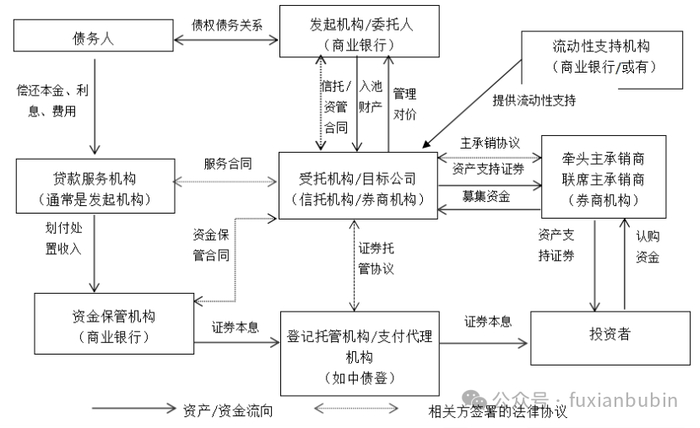 不良资产证券化产品是资产证券化产品中的一个特殊类型,是将不良资产进行包装组合,并以此为基础发行可交易证券的一种融资形式。不良资产证券化系由不良资产持有者将资产所有权转让给SPV/SPT,由其将资产汇集成资产池,再以该资产池所产生的现金流为支撑在金融市场上发行有价证券进行融资,并以该资产池产生的现金流来清偿所发行的有价证券。其业务模式基本如下图: