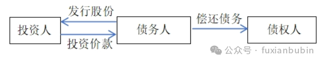 二是增资转股,是针对债务人企业引入新的投资者,通过向投资者发行股份,以股权融资募集到的资金用于偿还已有的负债,新的投资者资金主要来源于社会资金。这种模式通过引入了第三方投资人,将社会资金引入债转股企业的过程中,可以最大程度上保障了债权人的利益。第三方投资人作为股权投资者,后续可通过二级市场等方式实现股权退出。目前该种模式也是本轮市场化债转股较为常见的一种债转股模式,该模式的交易结构如下图: