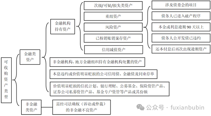 (六)除上述资产外,非金融机构、地方金融组织所有的,经人民法院或仲裁机构确权的逾期对公债权类资产,以及处置上述债权形成的实物资产、股权资产。