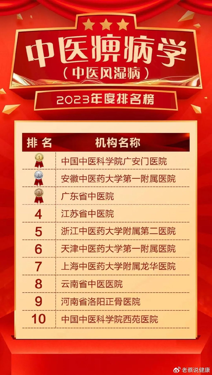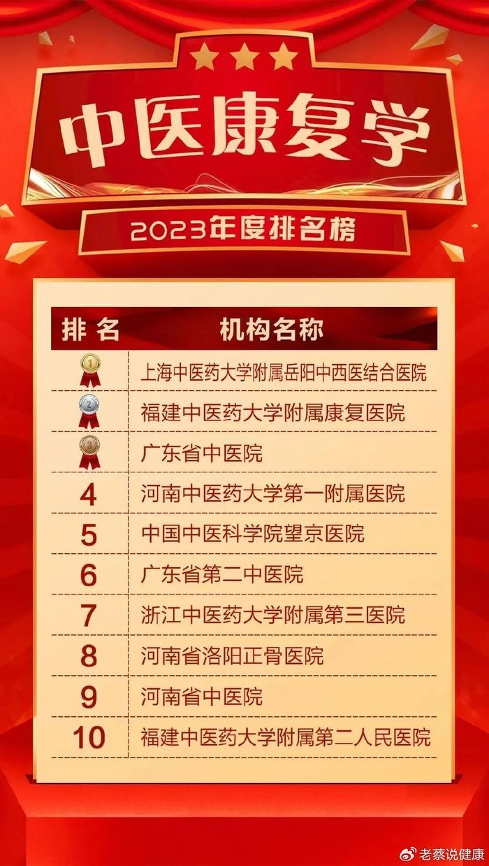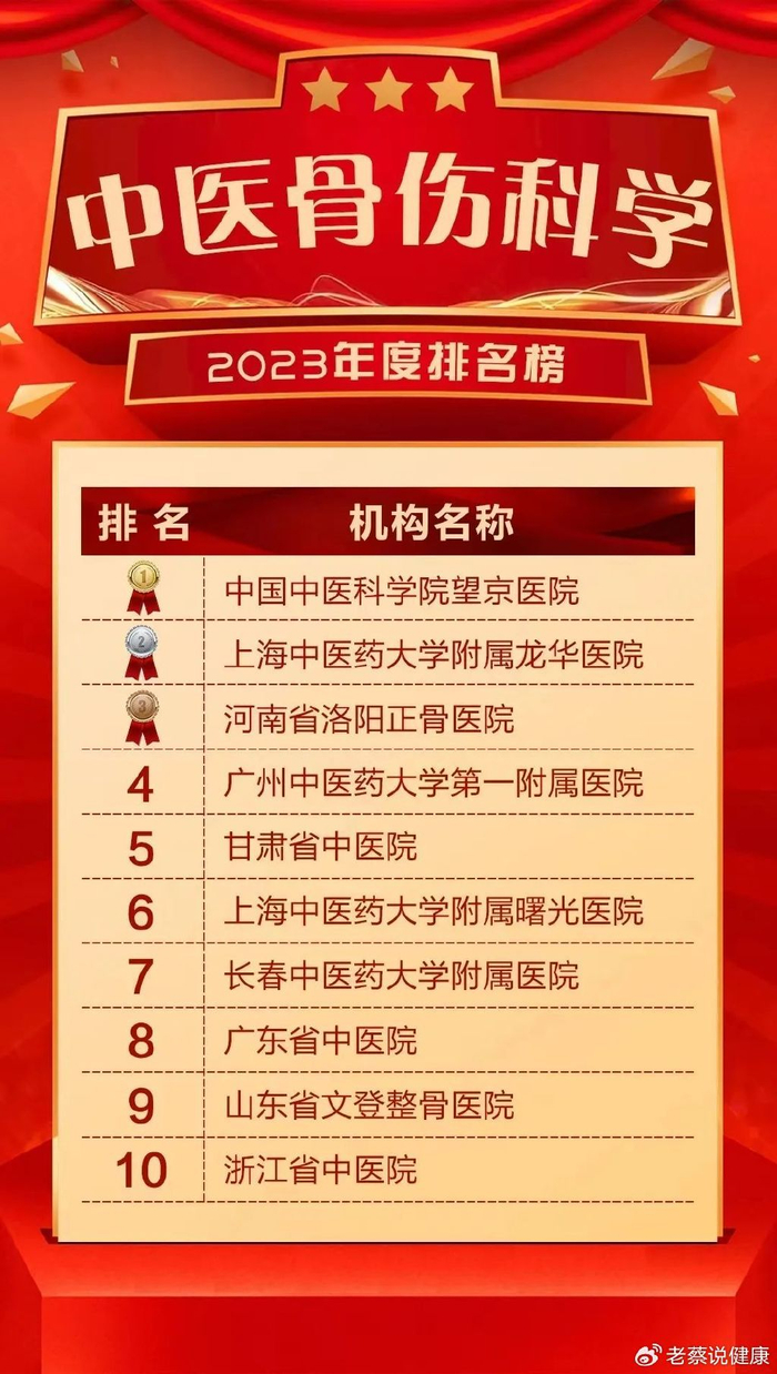 此次全国中医医院学科(专科)评价中,河南省洛阳正骨医院中医骨伤科学排名第3,中医康复学排名第8,中医痹病学(中医风湿病)排名第9。