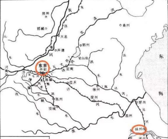 北宋汴河即隋代开凿的通济渠,是黄河的分支,自孟州河阴县(今郑州西北)引黄河水,经开封东南,于泗州入淮。汴河上接黄河,下通淮河、长江,通过漕运将江、淮一带的粮米,四面八方的百货,源源不断地运到开封,供应军需民用。宋太宗在一次汴河决口后,曾亲自出乾元门视察,并对群臣说:“东京养甲兵数十万,居人百万家,天下转漕,仰给在此一渠水,朕安得不顾?”这充分说明了汴河和宋王朝的密切关系。