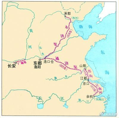 大业元年(605年)隋炀帝即位后,营建东都(今洛阳市)。将政治中心从大兴(今西安市)迁到洛阳。于是修凿以洛阳为中心的南北大运河成为当时的首要任务。同年即开通济渠,自洛阳城西苑引谷、洛水,绕洛阳城,东流至偃师入洛。这是通济渠的西段,解决了洛阳城下至黄河的水运路线。再自板渚(今河南荥阳县西北汜水镇东北)引黄河水循汴水东流,至浚仪(今开封市)别古汴水而出,折而东南流经今杞县、睢县、宁陵至商丘东南行蕲水河道,又经夏邑、永城、安徽宿县、灵璧、泗县、江苏泗洪至盱眙县对岸入淮,全长600公里,是通济渠东段。这东西两段连接起来沟通洛阳和江淮之间的通济渠,是隋炀帝所开运河中最重要的一段。