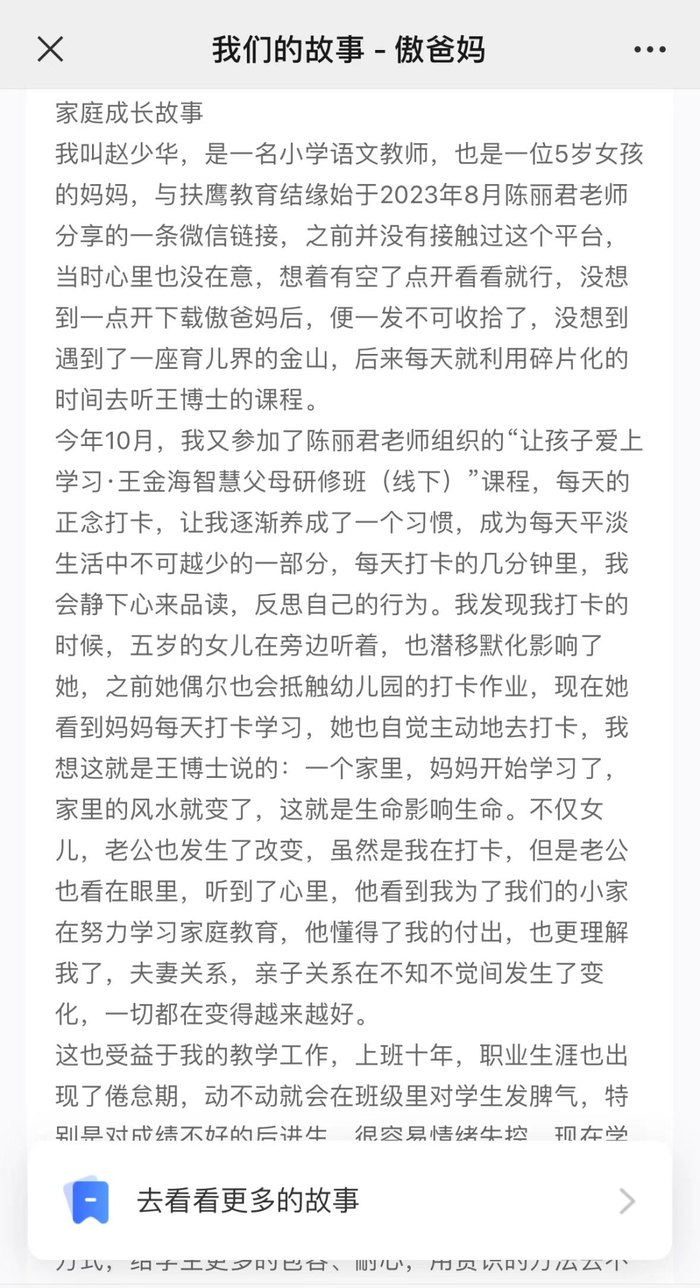 但田女士的母亲严女士对扶鹰却非常笃定。她告诉记者,在深入学习后,她认识到自己还存在很多问题,也了解到教育是一个循序渐进的过程,学习让她懂得了如何与孩子沟通交流,如何与孩子相处,“只有家长变好了,孩子自然就变好了。”