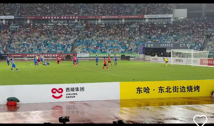6月21日晚,“苏超”第五轮焦点战常州VS南京的比赛在雨中开战,最终常州队主场0比4不敌南京队,虽然输球,但常州队依然赢得了无数掌声与呐喊。在足球场边,一块黄色的赞助牌引起了网友们的注意,这块由“东哈·东北街边烧烤”赞助的广告牌与京东、江苏银行等大品牌并列,迅速引发网友关注和热议,“东哈·东北街边烧烤”也是常州赛区22块广告牌中唯一的个体户赞助商。