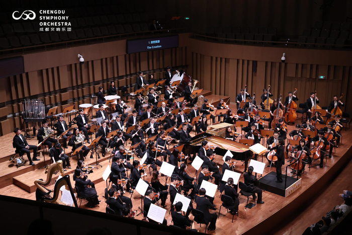 大型原创交响史诗《沃土》演出现场《沃土》包含五个乐章,依次围绕远古神明、传统文化、智慧创造、历史风云与世界和平展开,最终展望天下一家的美好愿景。作品标题灵感源自《三国志》中诸葛亮赞誉巴蜀的名句“沃野千里,天府之土”,寓意人类共同的物质与精神源泉。90后作曲家龚天鹏聚焦生命与创造,咏叹历史与自然,以原生态艺术匠心还原人类生命本真体验,创作手法上力求熔古铸今、中西交融,将民族素材升华为世界语言,彰显民族性这一创作之根。