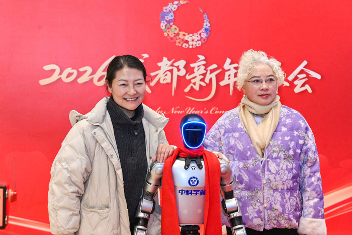 演出开始前,观众与机器人合影观众可通过直观的触摸屏界面选择口味、定制配料,机器人随即在透明操作舱内清晰展示冰淇淋的挤制与装饰过程。其拟人化的机械臂动作流畅而精准,吸引众多观众驻足围观体验,纷纷为“成都造”科技产品比心点赞。一些观演市民表示:近年来随着成都国际音乐之都建设不断取得成效,参加新年音乐会、聆听音乐盛宴已经渐渐成为市民迎接新年到来的一种爱好和习惯。市民代表表示,能在现场观看成都新年音乐会,还能与成都造科技产品现场互动,感到非常惊喜,也非常荣幸。在成都干事创业不仅有很好的氛围和环境,身边同事奋进创新的活力,更让自己感到有干劲,在成都工作和生活很幸福,更愿意为建设成都奉献自己的力量。