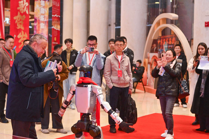 演出开始前,观众打卡留影音乐会开始前,不少观众提早来到成都城市音乐厅门外打卡留影。一批本地人工智能企业携前沿机器人产品也在现场亮相,铛钯机器人和人形机器人的现场表演、AI智能戒指的神奇互动,为这场新年音乐盛宴注入科技动能,其中冰激淋机器人无疑成为现场互动体验的焦点。它不仅能够完成从接单、制作到出品的全自动化流程,更凭借其灵敏的交互设计,与观众展开了生动有趣的实时互动。