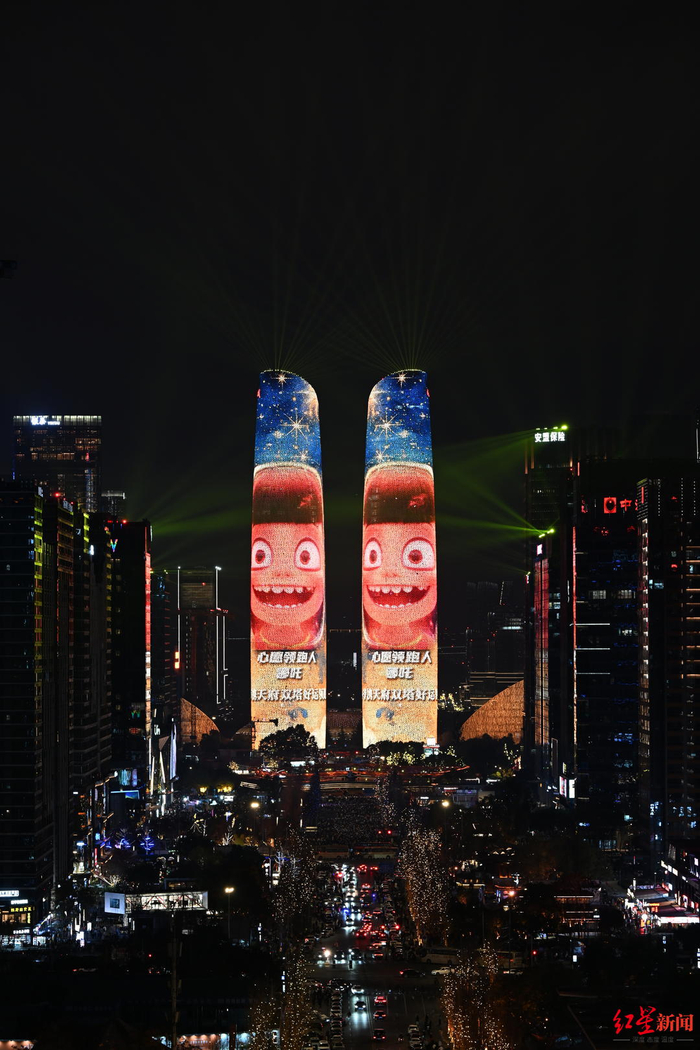 成都跨年夜,仪式感拉满!2025年12月31日晚,成都高新区交子大道,光影秀、跨年倒数、心愿上塔等精彩活动轮番上演,在场的人们把目光投向城市的天际线——天府双塔。“以岁月之名,祝你岁岁安澜”“山河无恙,国泰民安”“愿蓉城温暖,烟火常新”……数百条来自普通市民的新年心愿,在跨年之夜点亮双塔。成都市泡桐树小学(天府校区)学生、滑板运动员宋昂媞,成都高新区企业代表秦向东、宋庆国,文艺工作者张韶涵、张杰等13名“心愿领跑人”依次“上塔”,引领心愿、祝福新年。
