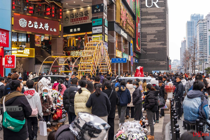 ▲元旦佳节,成都地标景点人流如织元旦消费旺