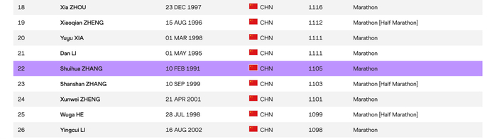 多家跑步自媒体统计的2025年女子马拉松选手成绩中,张水华以2:30:38的成绩排名第17,将大量职业马拉松选手甩在身后。在国际田联官网上中国女子马拉松2025年成绩排名中,张水华以1105的积分排名第22。