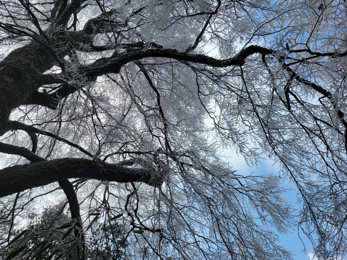▲黄荆老林雾凇 徐挺 摄据了解,老君山位于四川省宜宾市屏山县龙华镇,海拔2008.7米,它不仅是川南最高峰,也是我国首个以保护“鸟中大熊猫”——四川山鹧鸪等珍稀雉科鸟类为主的国家级自然保护区,也是大熊猫栖息地的一部分。从今年元旦开始,老君山持续多日下雪,山风裹挟着潮湿的雨雾,在森林的枝桠间凝华成“玉树琼枝”。雾凇将老君山点缀得晶莹剔透,枯木挂上厚重的冰晶,宛如静谧的珊瑚丛林,在清冷天光下流转着银辉。