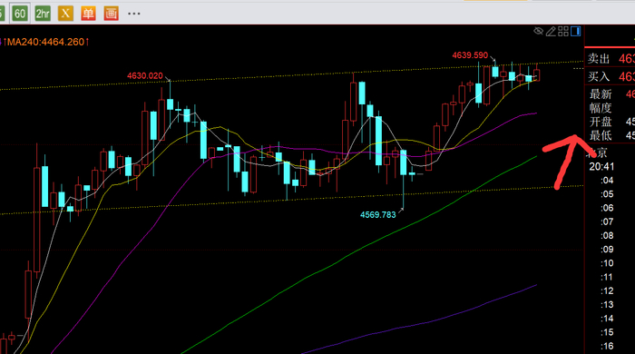第三,黄金小时线级别:隔夜成功试探4573支撑后,今日开盘直接一路北上拉升,一路冲到最高4639一线,也是图中箱体通道上轨,4640下已多次承压,今晚关注它的得失情况;若冲破可能还会延续空间,但容易冲高回落;理想走势是倾向于向下打压一波,维持高位整理,再触及通道下轨4580-4570支撑稳定再进行明日的拉升;高位反复区间整理之后,再继续日线进一步的上破发展,然后周五尾盘要小心会不会出现获利盘;因此,今晚先留意4640下阻力,若上破则留意日线4675下阻力,支撑4580-4570,中间尽量多看看,卡两边即可,总体上仍维持北上为主不变,跟随大趋势;