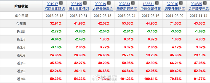 我大概拉了几只主动量化基金,收益如下: