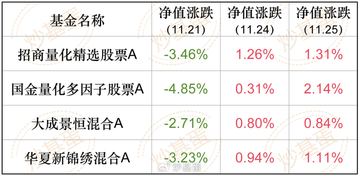 顺便也拉了一下上周五到今天的净值当日涨跌幅,也看看这几只表现如何。