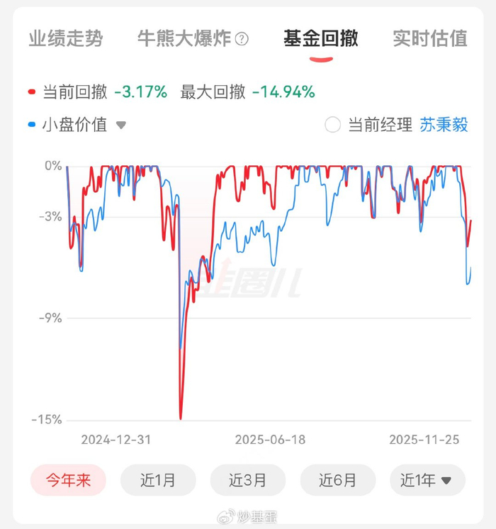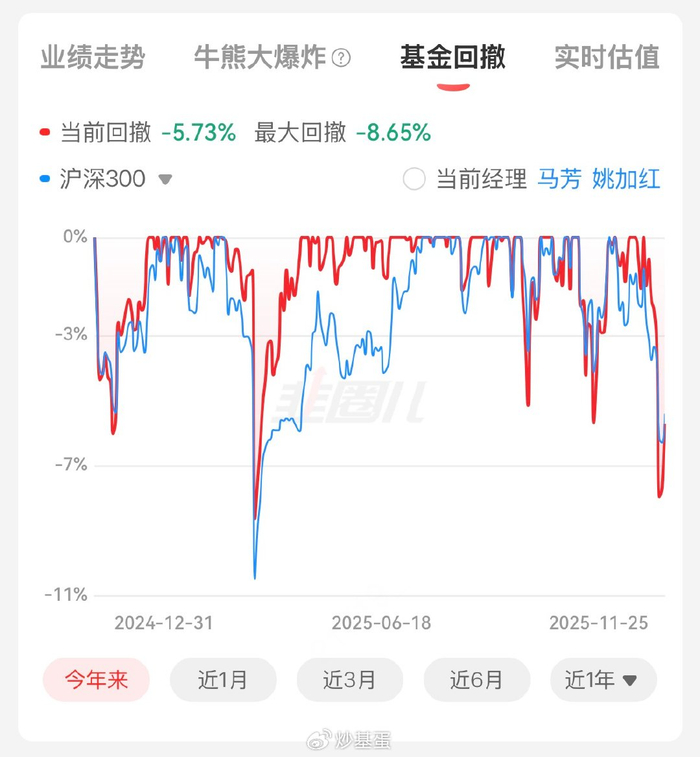 近1周-3.88%、近1月-2.49%、近3月-2.85%。在上周五11.21日当天普跌的行情下,单日净值-4.85%。这只基金整体回撤小于上只,不过这次的回撤也是今年第二的水平了。目前这只基金限额1万。