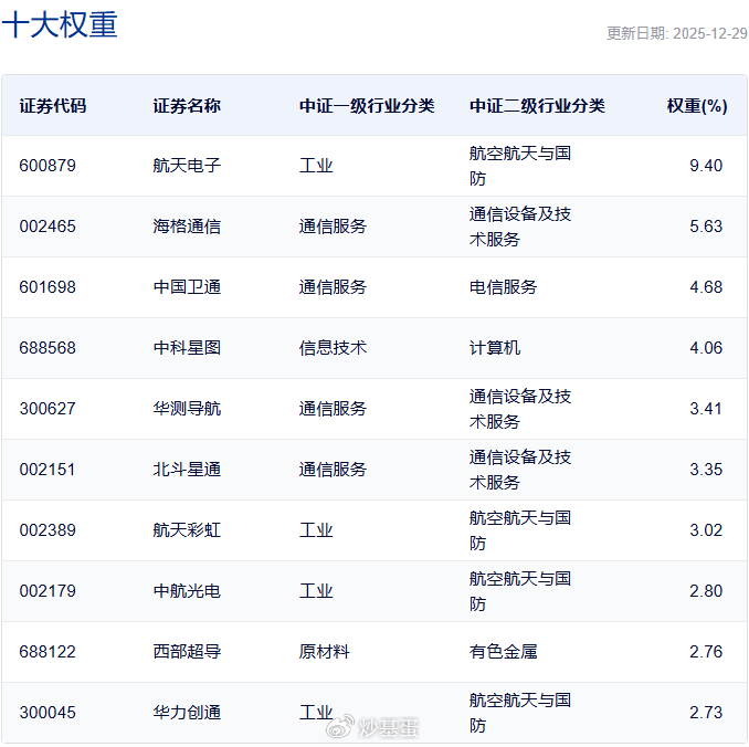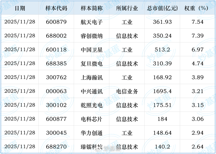 ②国证商用卫星通信产业指数,反映沪深北交易所商用卫星通信产业相关上市公司的证券价格变化情况。成分股50个,均值71.47亿、中位数58.45亿。