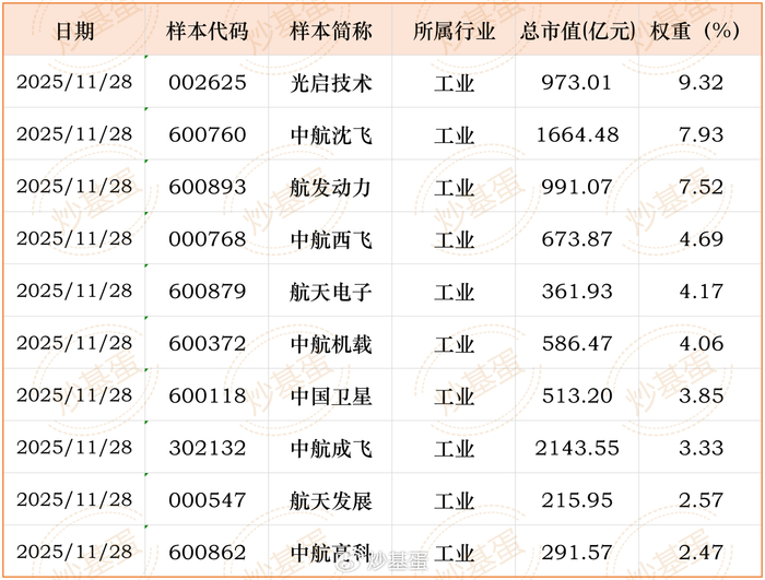 ①国证航天航空行业指数,由沪深北交易所航空航天行业的证券组成,以反映该行业证券的整体走势。成分股50个,均值129.31亿、中位数85.40亿。