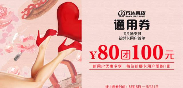 下载并注册飞凡APP,购百货100元现金券,使用飞凡通支付享立减!新用户80元团100元,老用户88元团100元,专柜折后使用更优惠哟~