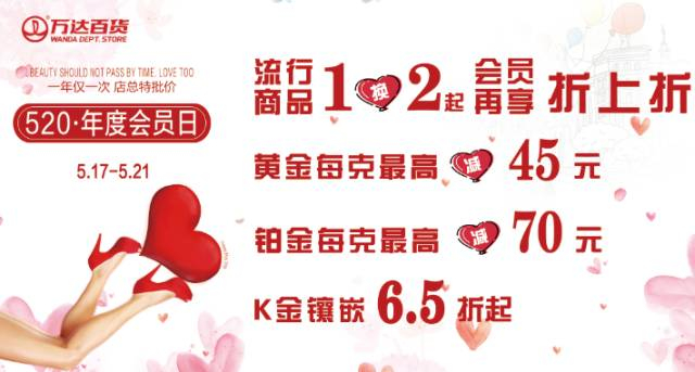 5月17日-21日,万达百货对亲爱的会员们,致以最真挚的表白,用实际行动,表达对你们的爱。