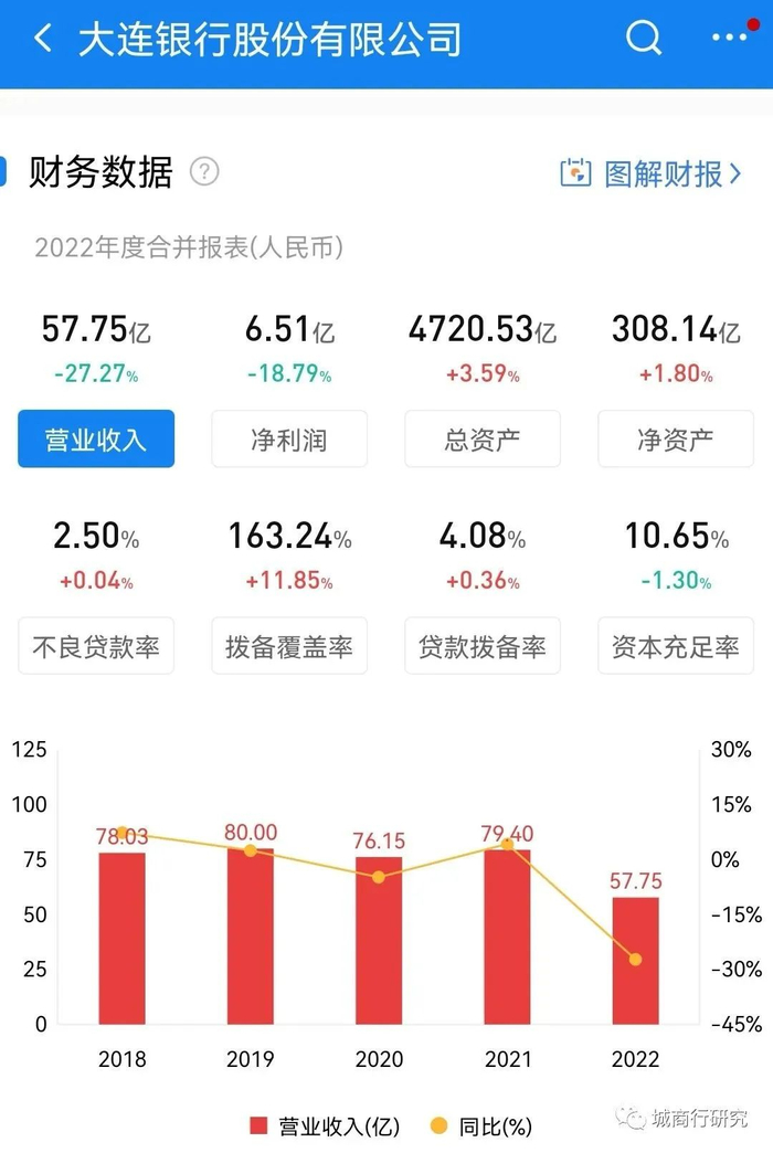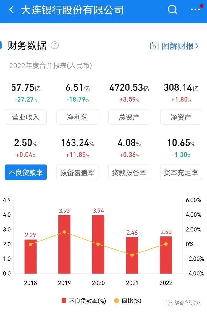 大连银行的前身为大连市城市商业银行,成立于1998年,由当时的大连城市信用社改制而成。2014年,受股东大连实德集团破产牵连等诸多因素影响,大连银行风险爆发,资产质量跌入谷底,不良率高达5.59%,成为了一家问题银行。