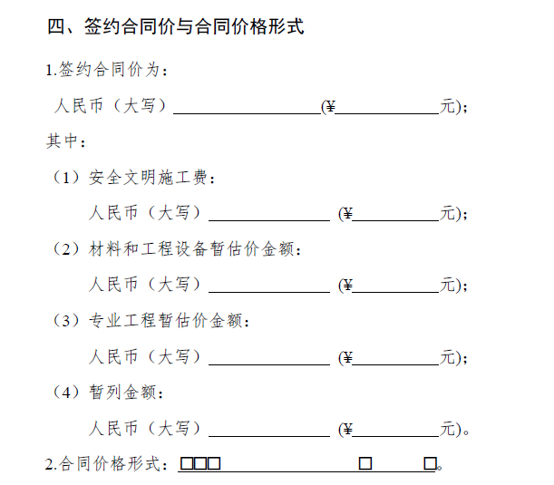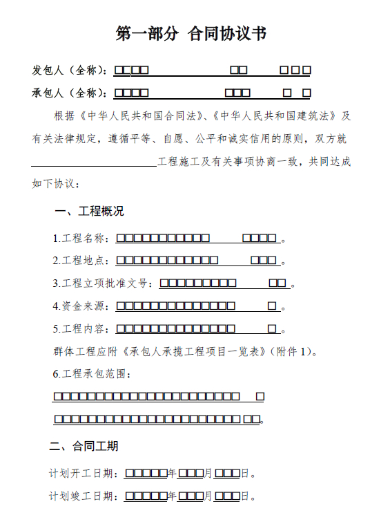 合同第一条约定的是工程概况,这里注意一下工程地点。因为施工企业跨县市提供建筑服务的,会涉及一个预缴增值税的问题。根据财税〔2016〕36号文,一般纳税人跨县(市)提供建筑服务,适用一般计税方法的,要以收到的全部款项扣除支付的分包款后的余额,按2%的预征率在建筑服务发生地预缴税款;一般纳税人跨县(市)提供建筑服务但采用简易计税方法的,以及小规模纳税人,跨县(市)提供建筑服务的,要以收到的全部款项扣除支付的分包款后的余额,按3%的预征率在建筑服务发生地预缴税款。预缴完后,再向机构所在地进行纳税申报,缴纳剩余部分的税款。注意,一般纳税人适用一般计税方法的,在建筑服务发生地预缴税款时可以扣除支付的分包款,在机构所在地申报时,就不能扣除支付的分包款了。而一般纳税人适用简易计税方法的,以及小规模纳税人,无论在预缴时还是申报时,都是可以扣除支付的分包款的,并且这两类主体就是以扣除支付的分包款后的余额作为销售额的。