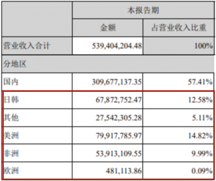 ▲图片来源:万里石2021半年报但同时值得注意的是本期企业毛利率数据的表现却差强人意。而这主要是因为万里石海外交易版图几乎占据了它收入的半壁江山。