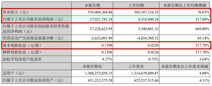 8月26日晚,万里石发布半年度业绩报。据半年报数据显示,2021年上半年万里石营业收入约5.39亿元,同比增加76.65%;归属于上市公司股东的净利润约2792万元,同比增加517.88%;基本每股收益0.1396元,同比增加517.7%。