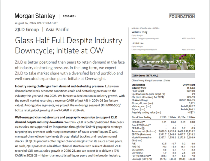 ▎摩根士丹利研报截图摩根士丹利、高盛、中金等数十家券商纷纷给予珍酒李渡“增持”“买入”“强烈推荐”等评级。