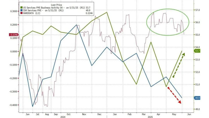 美国供应管理协会采购经纪人指数显示,五份服务业指数下降1.7至49.9,低于五十临界数字,表明美国的服务业处于萎缩状态。华尔街高度关注这一数据,核心原因美国是服务业大国,百分之七十的经济增长源自于服务业。服务业萎缩,直接推导出经济可能衰退。