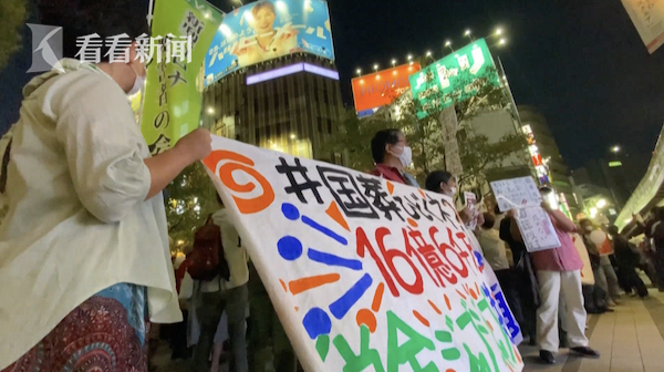 当晚,抗议者举着“反对国葬”的标语,指责岸田内阁滥用纳税人的钱。抗议者五十岚捷美表示:“眼下还有许多日本人在疫情导致的经济困境中挣扎,而政府却要花掉纳税人交的16亿日元为安倍晋三举行国葬,这令人非常愤怒。我认为这不可接受,我们不能再沉默,所以我来这里抗议。”