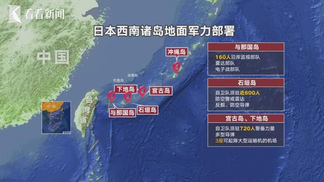 2016年,日本陆上自卫队与那国驻屯地成立,约160人的沿岸监视部队进驻;2022年和2024年,航空自卫队雷达部队和陆上自卫队电子战部队相继入驻;2025年,日方又计划在此部署03式中程地对空导弹,并新编对空电子战部队。若全部实现,在这个面积不足30平方公里的小岛上,驻军及军属人数将占到岛上人口约四分之一。