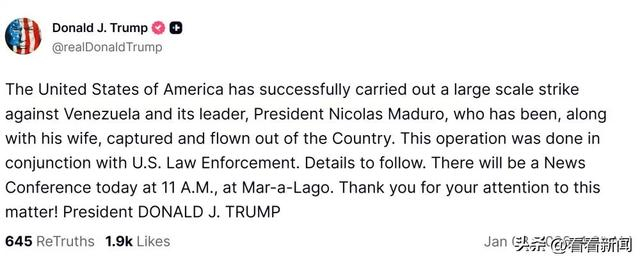这是一场战术上的完美突袭,却可能是战略上的巨大赌博。因为聚光灯之外,将是一个更加破碎和危险的世界。美国正在向世界传递了一个危险的信号:在“美国优先”的旗号下,强权即公理,主权可被践踏,国际法只是一纸空文。对于委内瑞拉人民而言,不论马杜罗功过如何,他们的国家命运再次被外部强权强行改写。