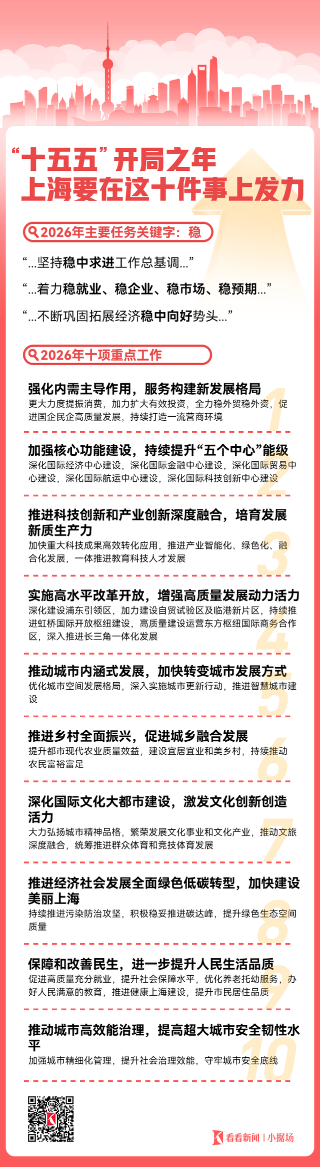 今年是实施“十五五”规划的开局之年,上海将做好哪些重点工作?一图带你读懂上海2026政府工作报告。