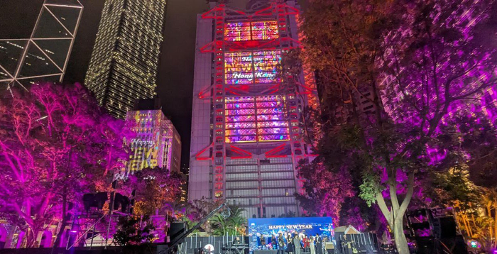 香港旅游发展局跨年夜,在中环遮打道行人专用区举办跨年倒数活动,舞台设于皇后像广场。今年活动以“新希望、新开始”为主题,与大家迎接充满希望的新一年。